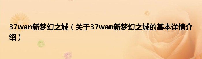 本文关于37wan新梦幻之城的基本详情介绍就讲解完毕,希望对大家有所帮助。