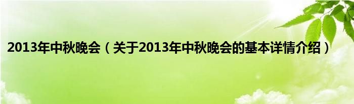 本文关于2013年中秋晚会的基本详情介绍就讲解完毕,希望对大家有所帮助。