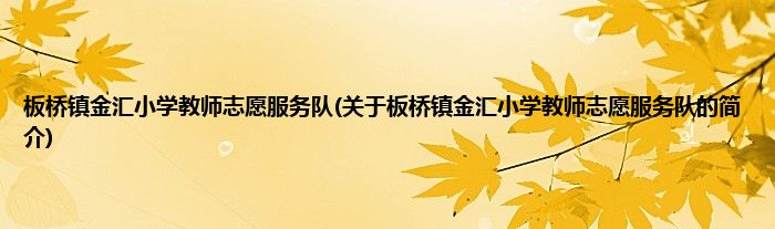 本文关于板桥镇金汇小学教师志愿服务队的简介就讲解完毕,希望对大家有所帮助。