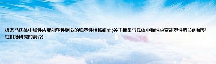 本文关于板条马氏体中弹性应变能塑性调节的弹塑性相场研究的简介就讲解完毕,希望对大家有所帮助。