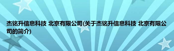 本文关于杰铭升信息科技 北京有限公司的简介就讲解完毕,希望对大家有所帮助。