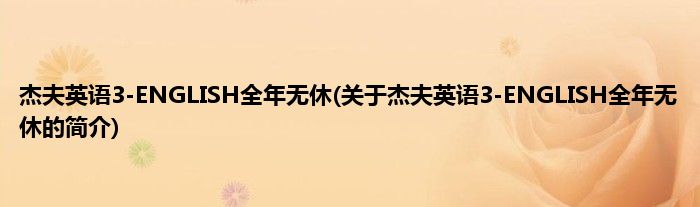 本文关于杰夫英语3-ENGLISH全年无休的简介就讲解完毕,希望对大家有所帮助。