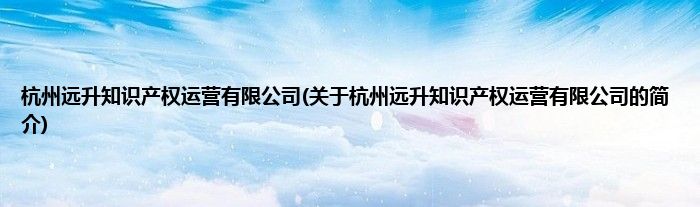 本文关于杭州远升知识产权运营有限公司的简介就讲解完毕,希望对大家有所帮助。