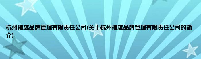 本文关于杭州禧越品牌管理有限责任公司的简介就讲解完毕,希望对大家有所帮助。