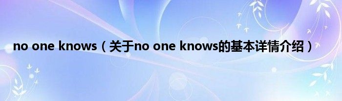 本文关于no one knows的基本详情介绍就讲解完毕,希望对大家有所帮助。