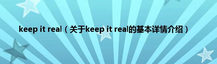 本文关于keep it real的基本详情介绍就讲解完毕,希望对大家有所帮助。
