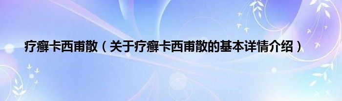 本文关于疗癣卡西甫散的基本详情介绍就讲解完毕,希望对大家有所帮助。