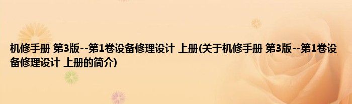 本文关于机修手册 第3版--第1卷设备修理设计 上册的简介就讲解完毕,希望对大家有所帮助。