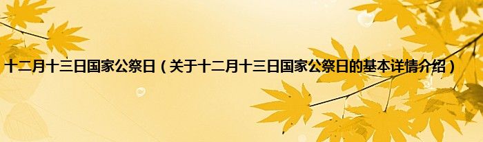 本文关于十二月十三日国家公祭日的基本详情介绍就讲解完毕,希望对大家有所帮助。