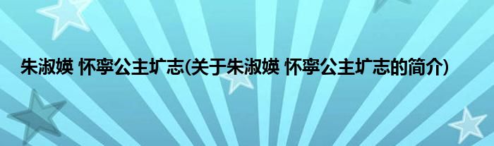 大家好,朱淑媖 怀寜公主圹志,关于朱淑媖 怀寜公主圹志的简介很多人还不知道,现在让我们一起来看看吧!