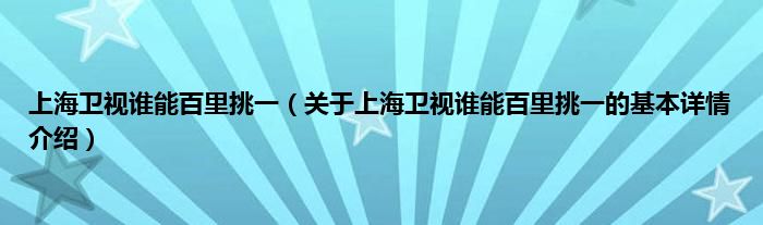 本文关于上海卫视谁能百里挑一的基本详情介绍就讲解完毕,希望对大家有所帮助。