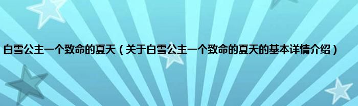 本文关于白雪公主一个致命的夏天的基本详情介绍就讲解完毕,希望对大家有所帮助。