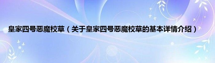 本文关于皇家四号恶魔校草的基本详情介绍就讲解完毕,希望对大家有所帮助。