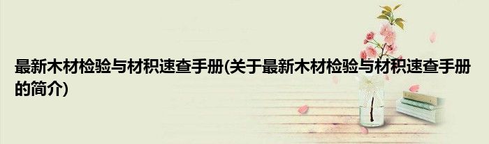 本文关于最新木材检验与材积速查手册的简介就讲解完毕,希望对大家有所帮助。