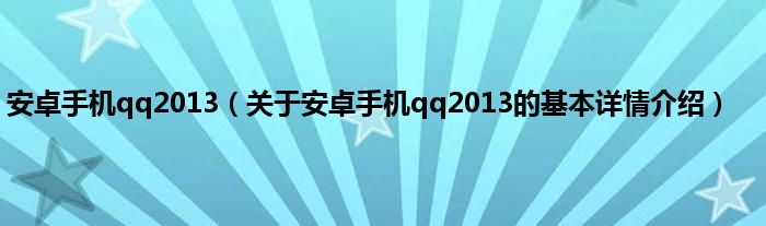 本文关于安卓手机qq2013的基本详情介绍就讲解完毕,希望对大家有所帮助。