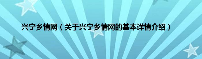本文关于兴宁乡情网的基本详情介绍就讲解完毕,希望对大家有所帮助。