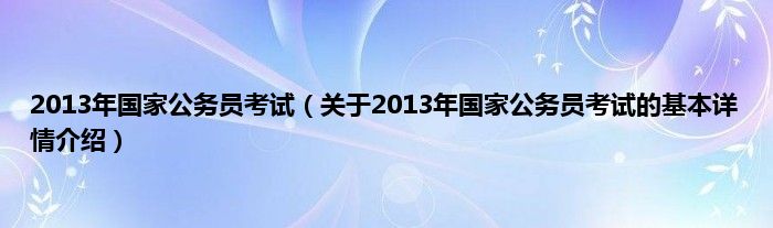 本文关于2013年国家公务员考试的基本详情介绍就讲解完毕,希望对大家有所帮助。