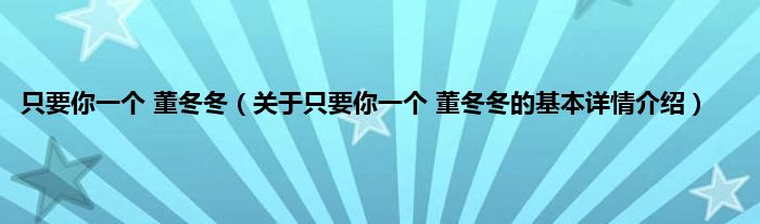 只要你一个 董冬冬(关于只要你一个 董冬冬的基本详情介绍)