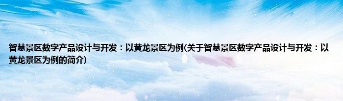 大家好,智慧景区数字产品设计与开发:以黄龙景区为例,关于智慧景区数字产品设计与开发:以黄龙景区为例的简介很多人还不知道,现在让我们一起来看看吧!