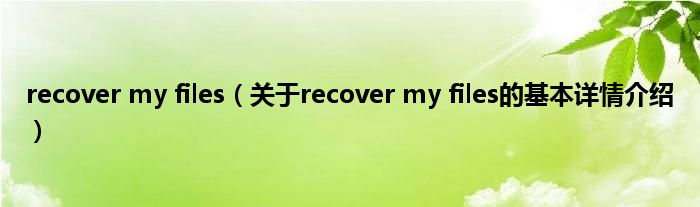 本文关于recover my files的基本详情介绍就讲解完毕,希望对大家有所帮助。