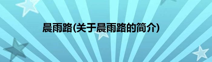 大家好,晨雨路,关于晨雨路的简介很多人还不知道,现在让我们一起来看看吧!