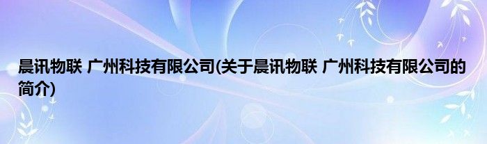 本文关于晨讯物联 广州科技有限公司的简介就讲解完毕,希望对大家有所帮助。