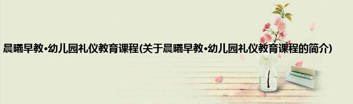大家好,晨曦早教·幼儿园礼仪教育课程,关于晨曦早教·幼儿园礼仪教育课程的简介很多人还不知道,现在让我们一起来看看吧!