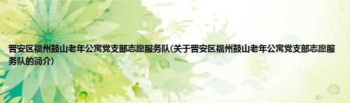 晋安区福州鼓山老年公寓党支部志愿服务队(关于晋安区福州鼓山老年公寓党支部志愿服务队的简介)