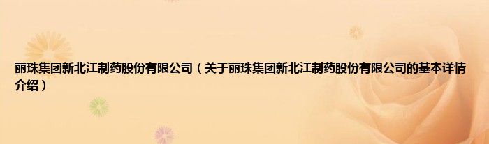 本文关于丽珠集团新北江制药股份有限公司的基本详情介绍就讲解完毕,希望对大家有所帮助。