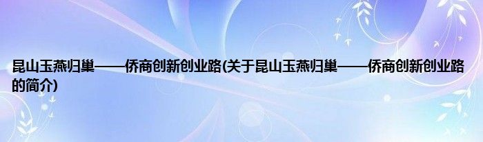昆山玉燕归巢——侨商创新创业路(关于昆山玉燕归巢——侨商创新创业路的简介)