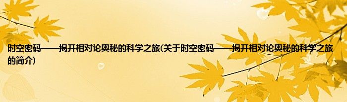 本文关于时空密码——揭开相对论奥秘的科学之旅的简介就讲解完毕,希望对大家有所帮助。