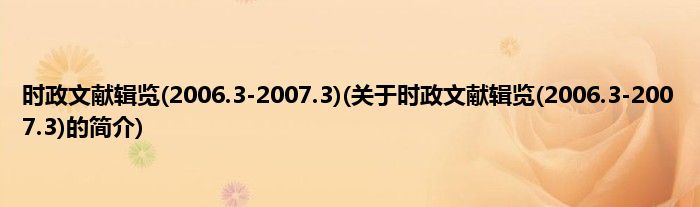 本文关于时政文献辑览(2006.3-2007.3)的简介就讲解完毕,希望对大家有所帮助。