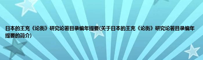 本文关于日本的王充《论衡》研究论著目录编年提要的简介就讲解完毕,希望对大家有所帮助。