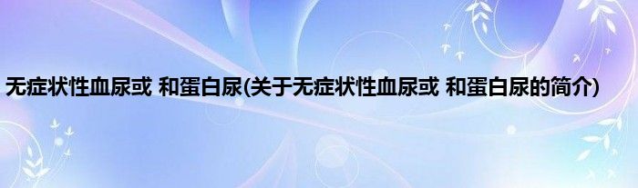 本文关于无症状性血尿或 和蛋白尿的简介就讲解完毕,希望对大家有所帮助。