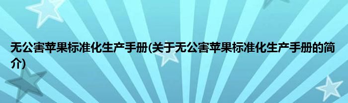 大家好,无公害苹果标准化生产手册,关于无公害苹果标准化生产手册的简介很多人还不知道,现在让我们一起来看看吧!