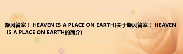 大家好,旋风管家! HEAVEN IS A PLACE ON EARTH,关于旋风管家! HEAVEN IS A PLACE ON EARTH的简介很多人还不知道,现在让我们一起来看看吧!