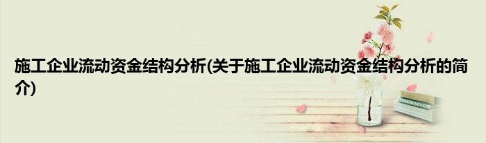 大家好,施工企业流动资金结构分析,关于施工企业流动资金结构分析的简介很多人还不知道,现在让我们一起来看看吧!