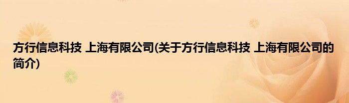 大家好,方行信息科技 上海有限公司,关于方行信息科技 上海有限公司的简介很多人还不知道,现在让我们一起来看看吧!
