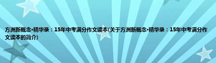 本文关于方洲新概念·精华录:15年中考满分作文读本的简介就讲解完毕,希望对大家有所帮助。