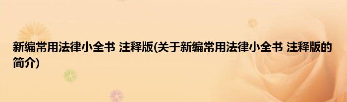 本文关于新编常用法律小全书 注释版的简介就讲解完毕,希望对大家有所帮助。
