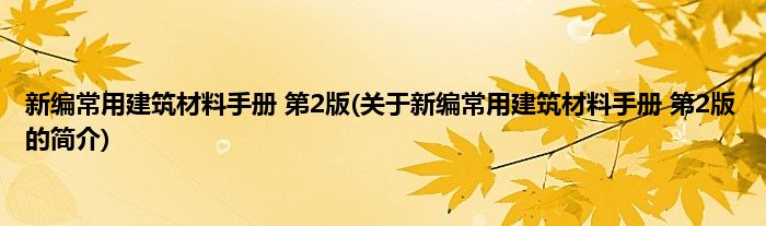 本文关于新编常用建筑材料手册 第2版的简介就讲解完毕,希望对大家有所帮助。