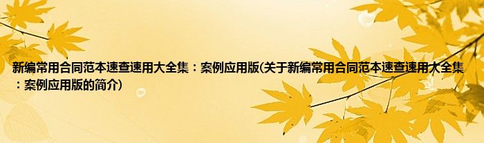 本文关于新编常用合同范本速查速用大全集:案例应用版的简介就讲解完毕,希望对大家有所帮助。