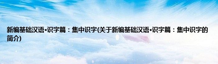 大家好,新编基础汉语·识字篇:集中识字,关于新编基础汉语·识字篇:集中识字的简介很多人还不知道,现在让我们一起来看看吧!