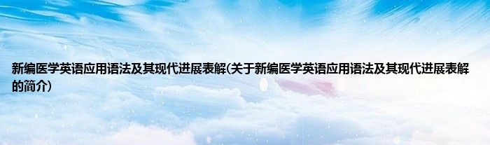 大家好,新编医学英语应用语法及其现代进展表解,关于新编医学英语应用语法及其现代进展表解的简介很多人还不知道,现在让我们一起来看看吧!