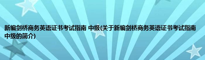本文关于新编剑桥商务英语证书考试指南 中级的简介就讲解完毕,希望对大家有所帮助。