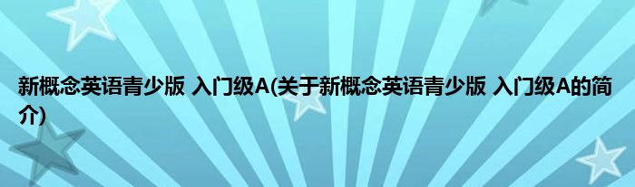 新概念英语青少版入门级A(关于新概念英语青少版入门级A的简介)