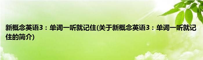本文关于新概念英语3:单词一听就记住的简介就讲解完毕,希望对大家有所帮助。
