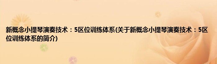 本文关于新概念小提琴演奏技术:5区位训练体系的简介就讲解完毕,希望对大家有所帮助。