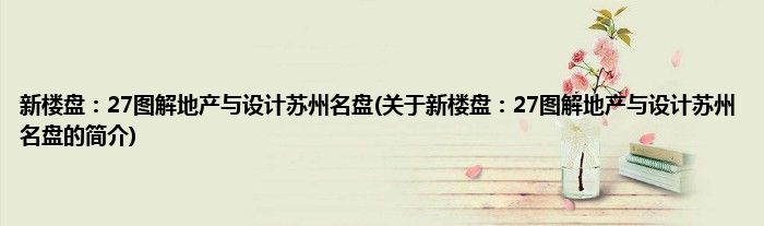 大家好,新楼盘:27图解地产与设计苏州名盘,关于新楼盘:27图解地产与设计苏州名盘的简介很多人还不知道,现在让我们一起来看看吧!