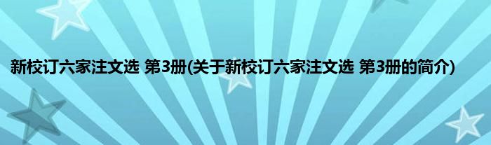 本文关于新校订六家注文选 第3册的简介就讲解完毕,希望对大家有所帮助。